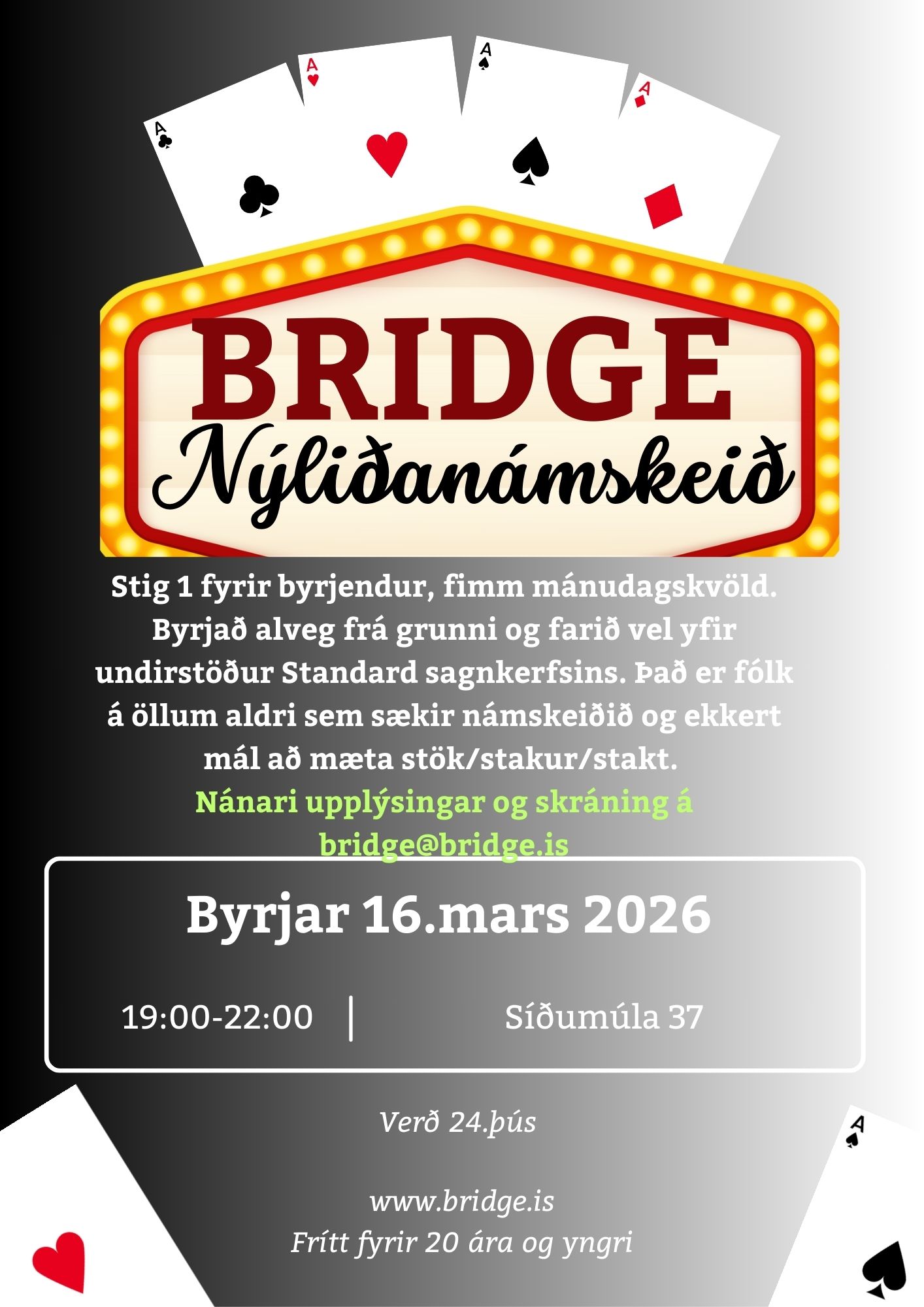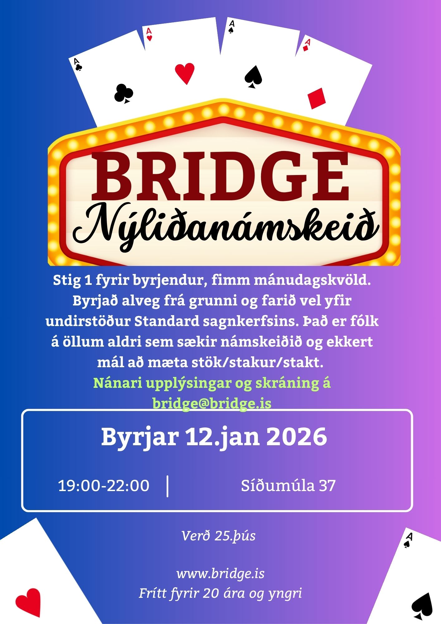 Upplýsingar og innritun í síma í tölvupósti bridge@bridge.is